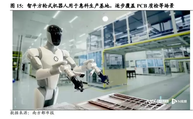 报告认为,短期内制造业将形成“人工决策+工业机器人精准执行+人形机器人柔性衔接”的模式。工厂因其“作业环境更加结构化”,成为人形机器人理想的“训练场”,待技术成熟后再向家庭、商业等场景延伸。在工业场景中,报告明确指出,“轮式形态具备稳定性、长续航、移动速度快的优势,将成为工业场景应用首选”。