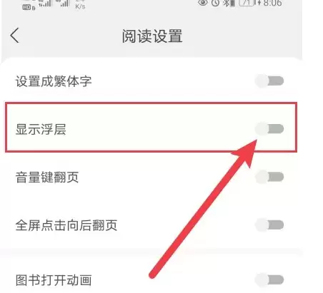 最后,在阅读设置菜单里,你就能看到【显示浮层】的开关了,将其开启即可完成设置,效果如图所示。