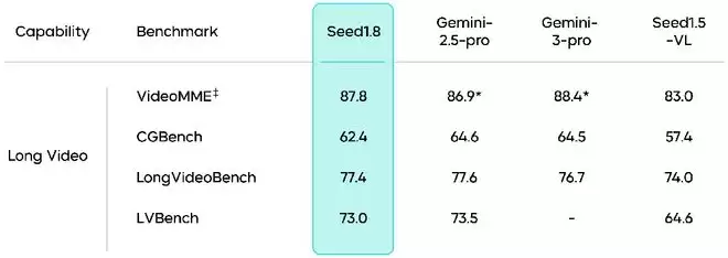 豆包1.8在长视频理解任务中同样表现突出。