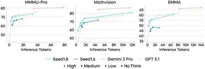 此外,豆包1.8在多模态推理任务中超越了前代模型Seed1.5-VL,在大部分任务中接近目前最先进的Gemini-3-Pro。