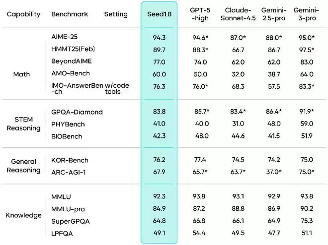 具体来看,在数学、推理和知识理解等核心基础能力维度上,豆包1.8的整体水平接近业界顶级通用模型。