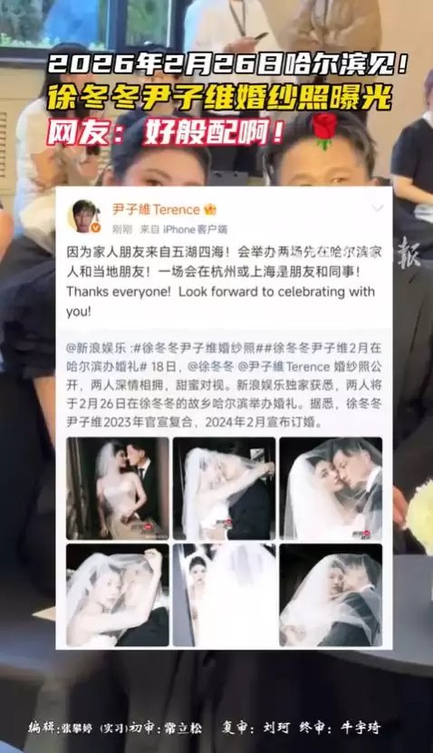 2024 年 8 月,徐冬冬一张牵手照官宣复合,配文 “兜兜转转还是你”,2024 年 2 月订婚时,徐冬冬一句 “如果顺利,想回哈尔滨办流水席”,又让大家盼了快两年。如今婚纱照一曝光,再回头看这段 8 年的分合,有网友感慨:“原来‘破镜重圆’不是童话,是尹子维用‘不放弃’熬出来的 —— 他说‘错过一次不能再错’,是真的把这句话刻进了心里。”