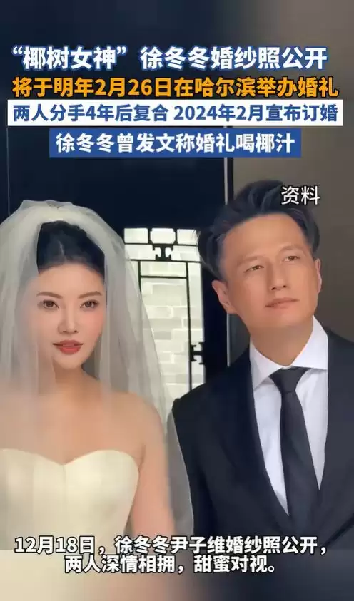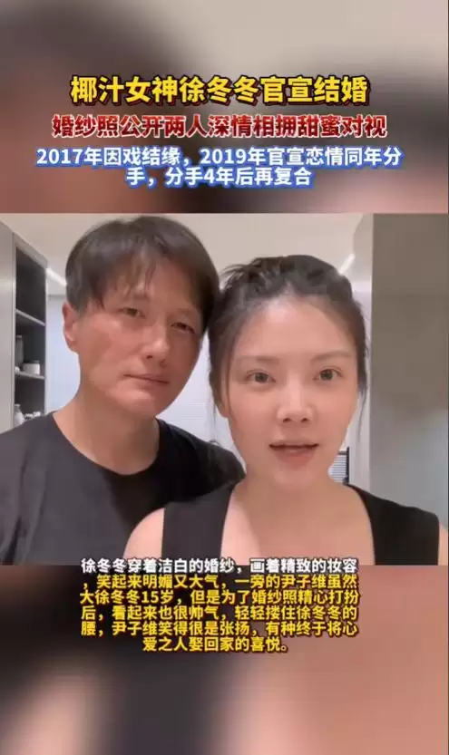 2025 年 12 月 18 日,徐冬冬在社交平台晒出与尹子维的婚纱照,配文里的这句话直接把全网甜到破防 现实版 “嫁给荧屏偶像” 的偶像剧照进生活!