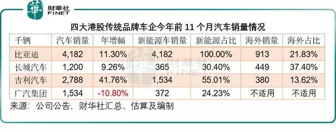 1)以比亚迪(01211.HK)、长城汽车(02333.HK)、吉利(00175.HK)等为首的传统品牌车企;