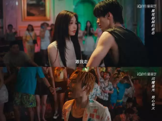 虞书欣这“拉丝”的眼神,完全是一副爱的轰轰烈烈、你侬我侬的小情侣状态,暧昧、迷恋的气氛从第一集就开始了。