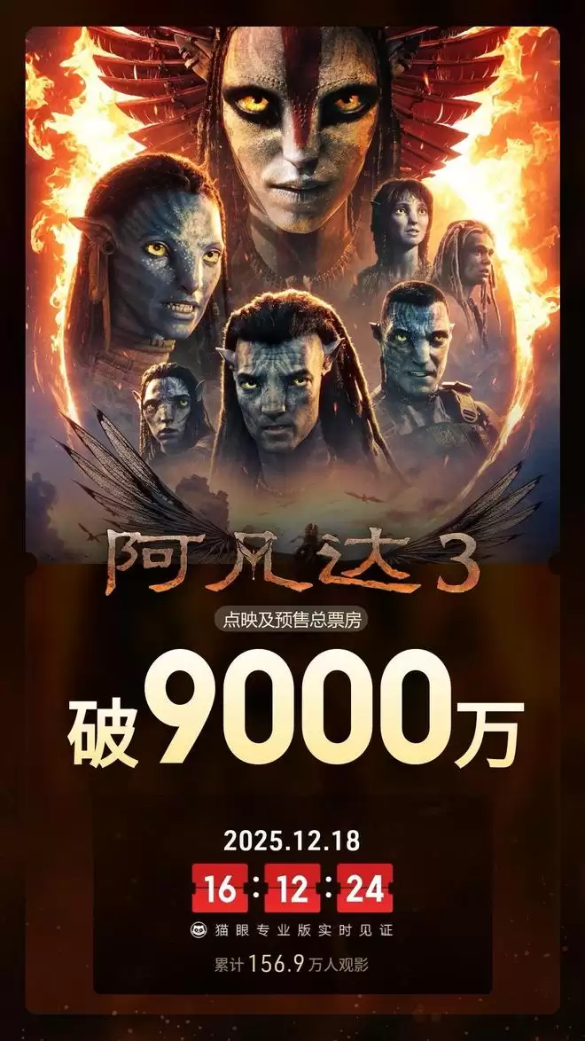 《阿凡达3》点映预售票房破9000万,引爆观影热潮