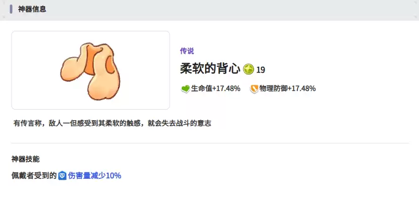 如果你使用的是辅助类型的角色,那么可以考虑柔软的背心。它能增加生命值以及物理防御属性,并能有效减少来自地震的伤害效果,拥有不错的抵御能力,是保护队友的坚实后盾。