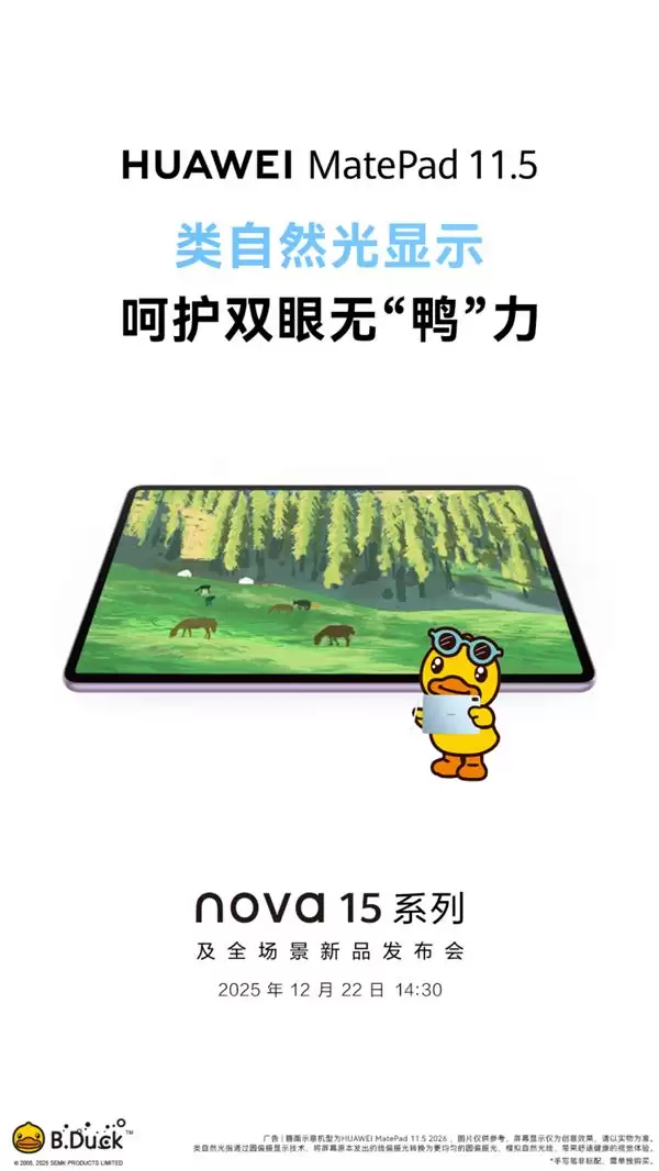 另外,预热海报中还出现小黄鸭IP元素,这是如今热度极高的国民级IP,凭借治愈、陪伴、轻松的形象,深受孩子与年轻家长喜爱。华为在MatePad 11.5这款“学习平板”上引入小黄鸭IP合作,希望通过可爱的“小黄鸭”IP形象让学习这件事变得不那么“紧绷”。
