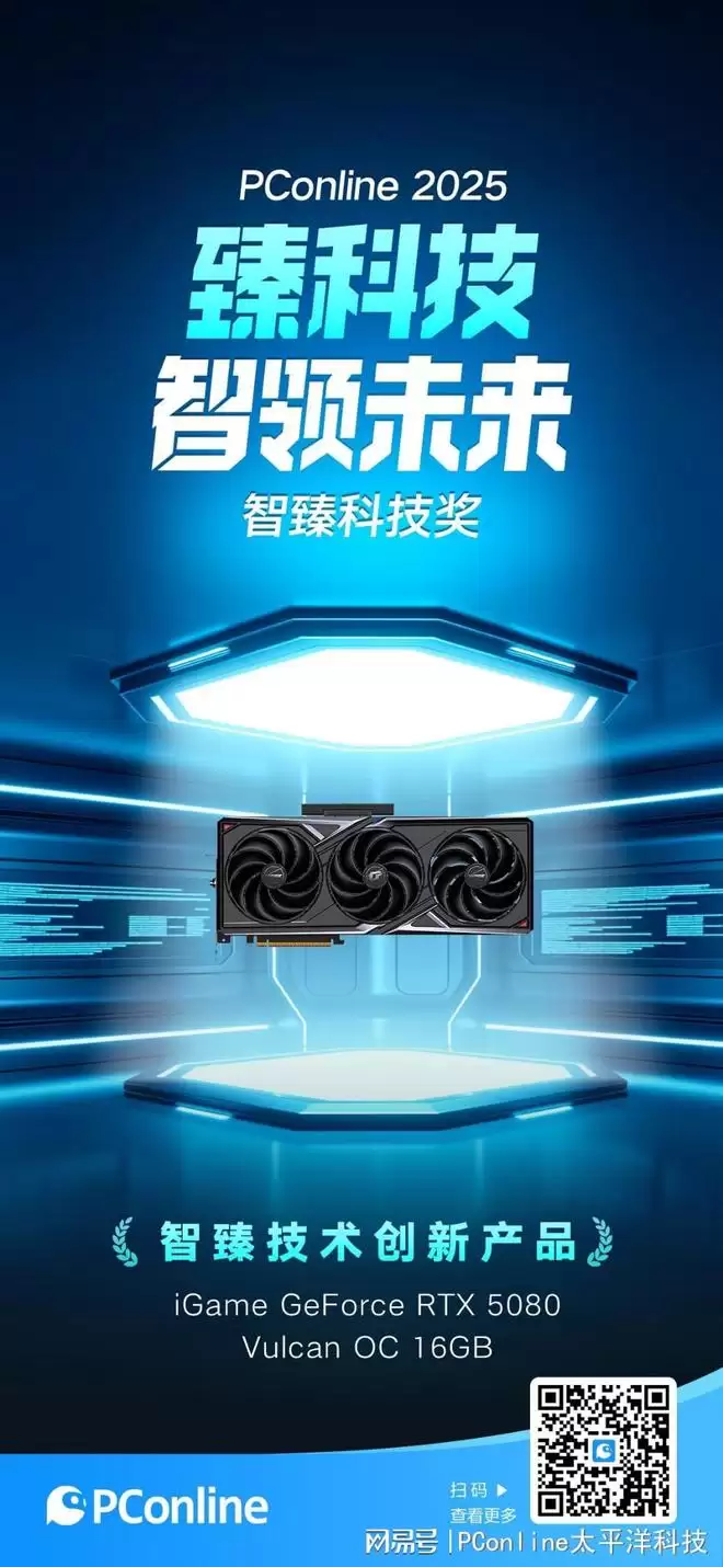 在人机交互与AI算力深度融合的全新纪元,硬件形态正经历一场从“单一工具”到“智能终端”的深刻变革。iGame GeForce RTX 5080 Vulcan OC 16GB 以极具未来感的赛博美学为骨架,不仅继承了该系列标志性的LCD智屏交互基因,更在散热架构与电路设计上实现了突破性创新,展现了科技与艺术融合的无限可能。恭喜 iGame GeForce RTX 5080 Vulcan OC 16GB 荣膺 PConline 2025智臻科技奖电脑硬件品类《智臻技术创新产品》奖项。
