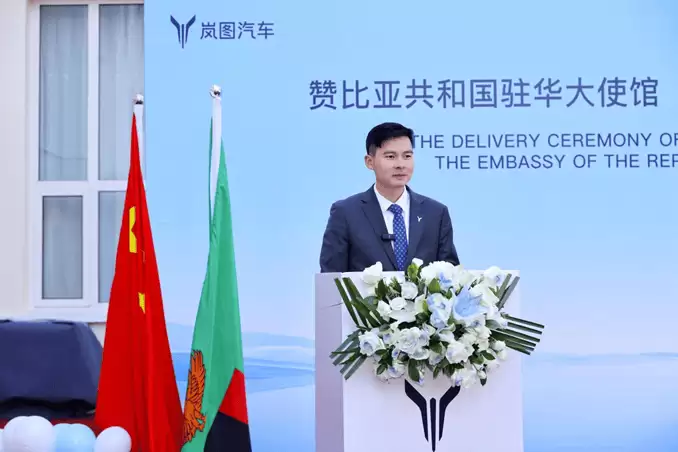 在交车仪式上,岚图汽车销售服务有限公司副总经理李博晓发表讲话。他表示,赞比亚驻华大使馆选择岚图梦想家作为工作用车,这是对岚图产品品质的高度肯定与信赖。岚图梦想家凭借其卓越的性能和高端的配置,将为使馆的公务出行以及对外的友好交流活动提供坚实的出行保障,助力使馆各项工作顺利开展。