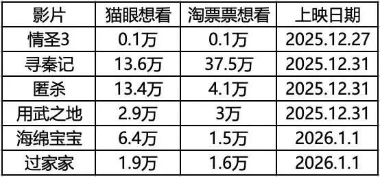有趣的是,今年跨年+元旦档中,演员肖央带来了《情圣2》和《用武之地》,而彭昱畅则是连续带来《匿杀》以及《过家家》。市场的竞争是残酷的,且市场的环境是冰冷的,对于当下的影片来说,都存在着很大的压力和挑战。