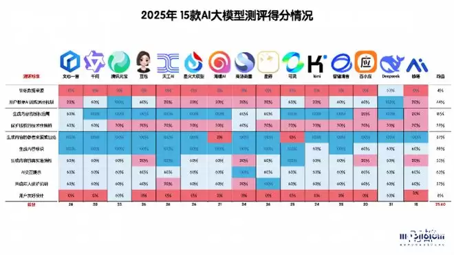 2025年15款大模型测评得分情况。