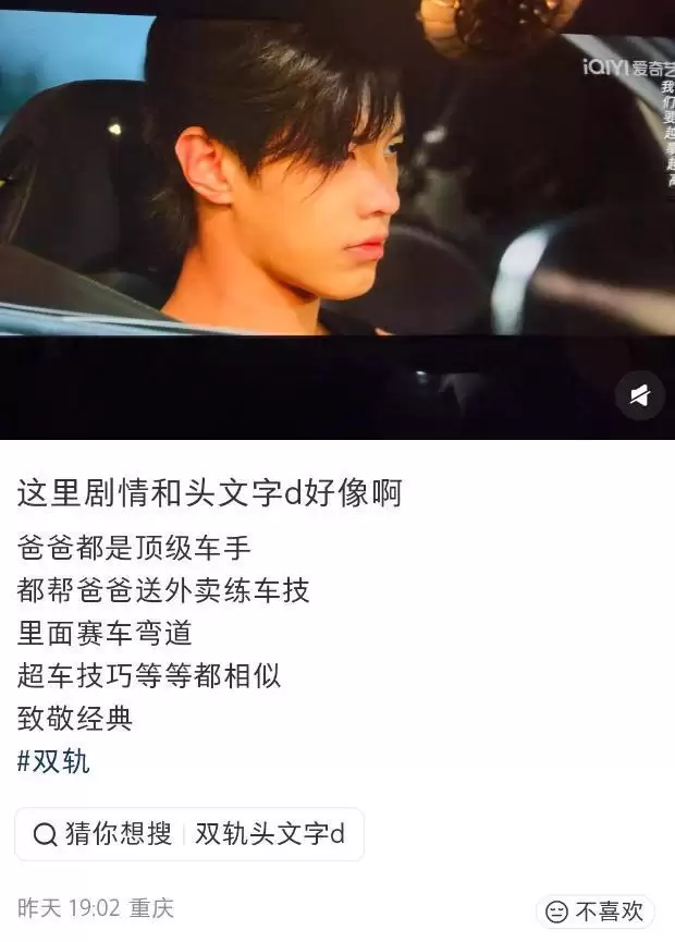 剧里的赛车线还跟《头文字D》里的戏如出一辙,把里面的人设、场景氛围都照搬了过来,让这剧又多了一种山寨感,已经不再只是单纯没逻辑的问题了。
