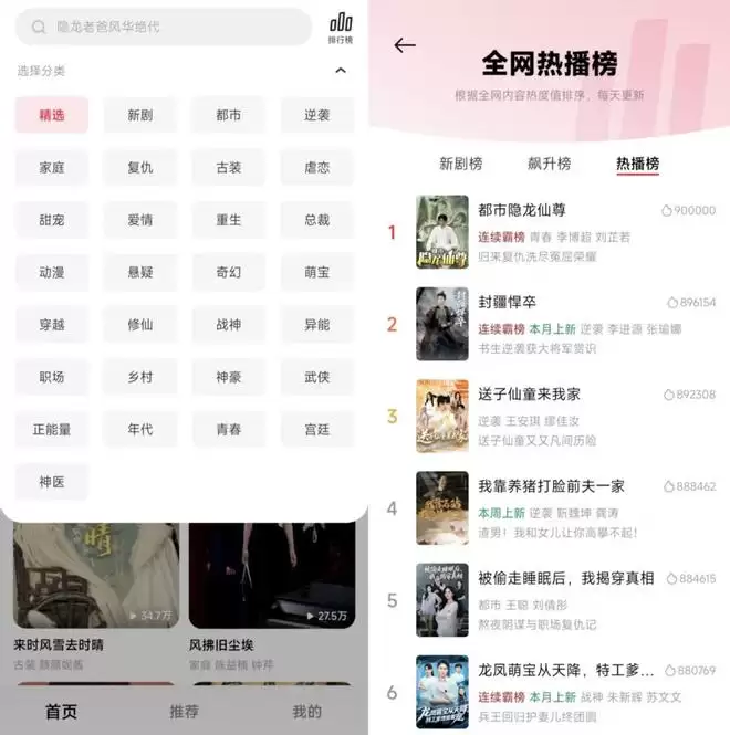 数据显示,目前短剧行业的两大头部 app,分别为红果短剧、河马剧场,其中红果短剧目前处于「大幅领先」的市场地位。那么,就以河马剧场为例,其今年宣称已经储备了超过 100 个类别的超过 1 万部「优秀」短剧作品。围观短剧,虽然没有给出具体的总片源数据,但类别上目前依然不到 30 个。