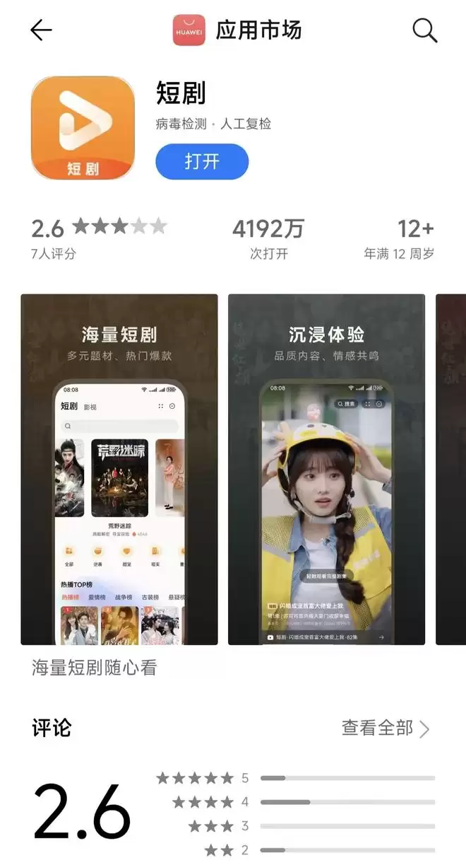 早在去年 5 月,华为就对旗下独立短剧快应用「短剧大全」开启了众测,不过采用的是付费短剧解锁和账户充值模式。今年 8 月,「短剧大全」更新到了 2.0 版本,正式名称也缩减为了「短剧」。