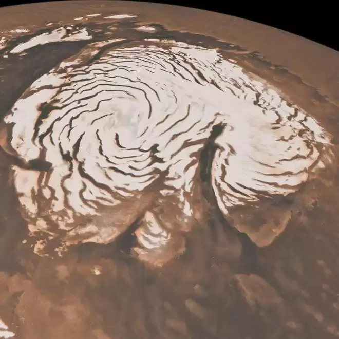 火星北部的冰盖,图片来源:美国宇航局