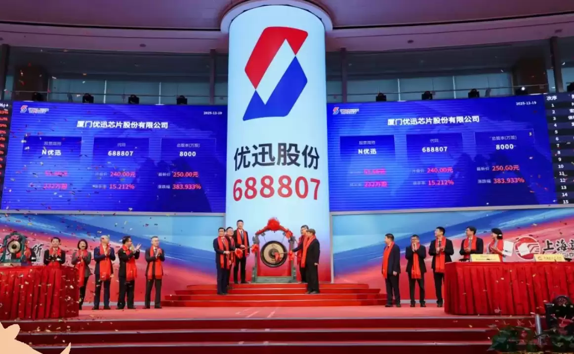 12月19日,厦门优迅芯片股份有限公司正式登陆科创板,股票代码“688807”。公司发行价为45.06元,当日开盘价报240元,较发行价大涨364.57%。截至当前,公司股价有所回落,市值约为187亿元。