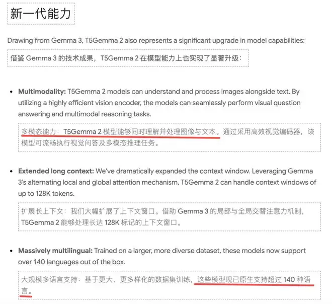 T5Gemma 2专注于架构效率与多模态(Encoder-Decoder架构回归)。
