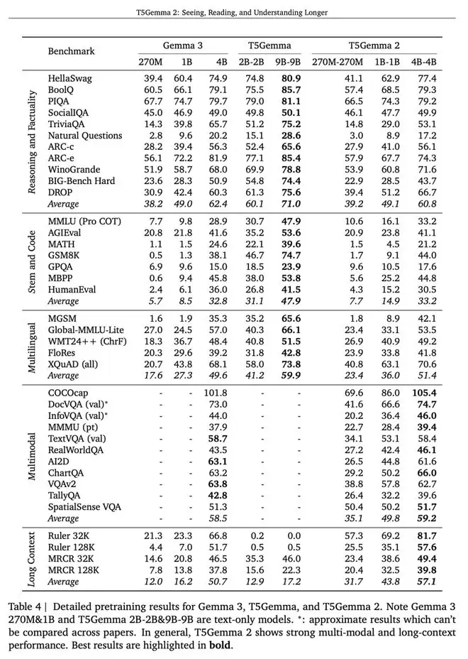谷歌开源了T5Gemma 2:270M–270M、1B–1B以及4B–4B三种规模的预训练模型。