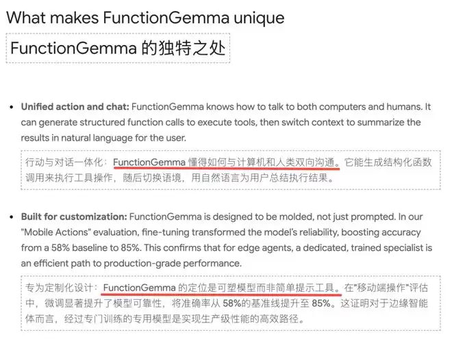 如果T5Gemma是从底层架构的创新,那么FunctionGemma就是从功能实现上的创新。