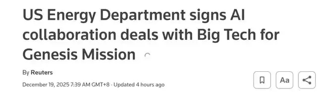 「创世纪计划」(Genesis Mission),可以看作一个AI版的国家科研操作系统。