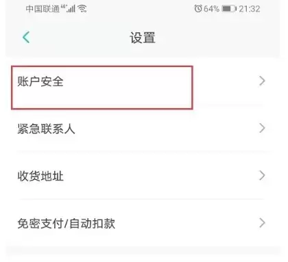 接着,在设置菜单里选择“账户安全”选项。