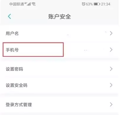 进入账户安全页面后,找到并点击“手机号”这一项。