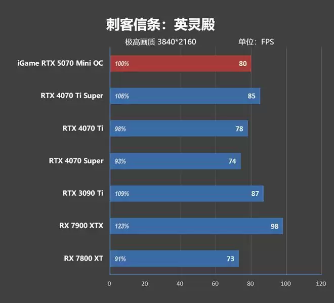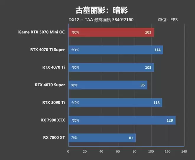 就性能来说,RTX 5070与RTX 4070 Ti相当,可以在4K分辨率下流畅运行主流3A大作,iGame RTX 5070 Mini OC 12GB的确有资格称作是高性能迷你显卡。