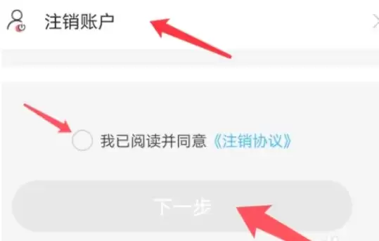 在跳转后的设置页面中,向下滑动,找到位于底部的【注销账户】入口,点击进入。根据提示,在确认页面中勾选【我已阅读并同意】的协议,最后点击【下一步】按钮,账户注销流程就完成了。