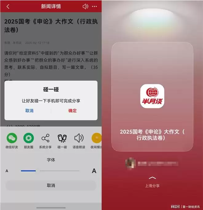 在使用鸿蒙版半月谈App学习的过程中,遇到重要的知识点和实用的资料,无需繁琐的复制链接、转发、跳转等操作,即可快速与好友共享。