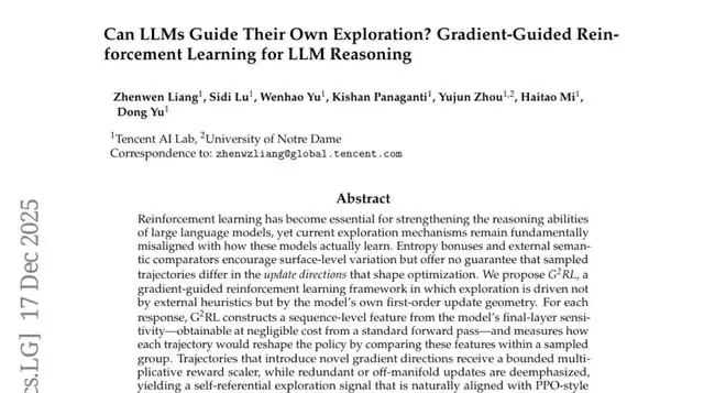 研究团队提出了一个革命性的想法:让AI模型观察自己的"思考过程",根据自己的学习需求来指导探索方向。他们开发了一种叫做G?RL(梯度引导强化学习)的新方法。这个方法的核心思想是,AI模型可以通过分析自己的"神经反应"来判断不同的解题路径是否能提供新的学习价值。