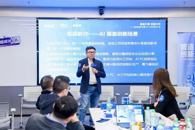 研讨环节,来自机器人、AI智能硬件、新材料、自动驾驶等AI+智造赛道的企业代表,与英特尔和戴尔的AI PC解决方案专家们,围绕《AI PC垂直创新场景及期待》主题,集思广益,贡献自己的前沿洞见和实践真知。