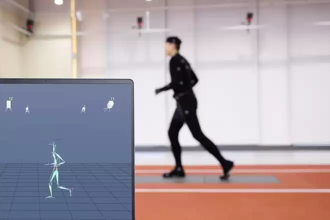 为此,实验室配备多功能超大跑台、无边动力泳池、模拟滑雪机、功率自行车等41类专业运动机械,以及气体代谢仪、动态心电检测仪、VBT速度力量功率计等29类专业金标检测设备,在高度还原各运动场景的同时精准捕捉运动过程中的体征数据。实验室还配备了惯性动作捕捉仪,以及62台三维光学动作捕捉相机,配合测力台即可实现对运动姿态的高精度识别。