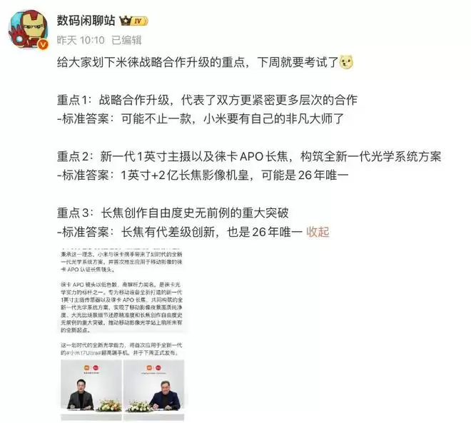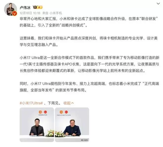 小米17 Ultra将是这一全新合作模式下的首款杰作,定于12月正式发布。