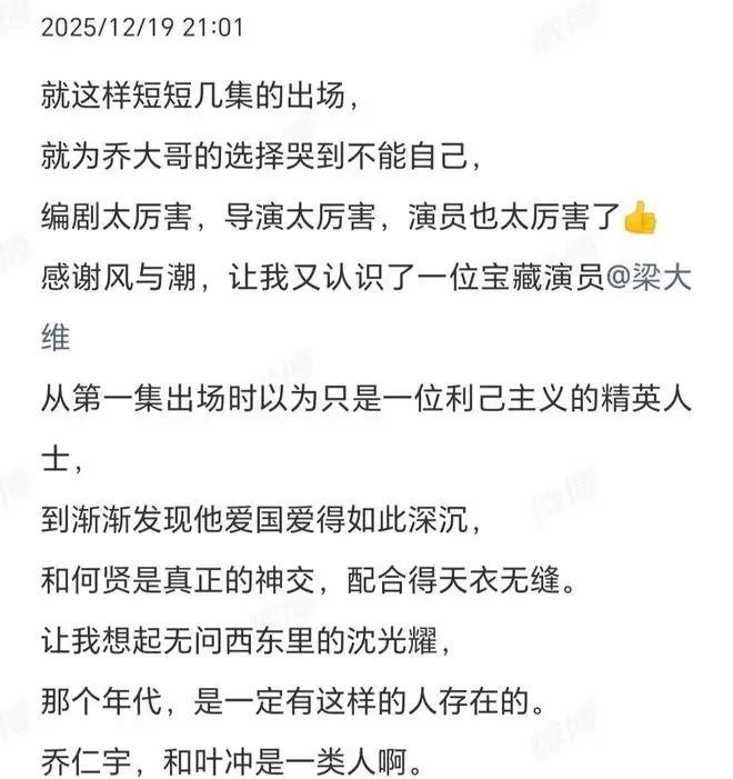 梁大维演技如此精湛,饰演的乔仁宇如此打动人心,他被观众称赞为宝藏级演员,的确当之无愧。