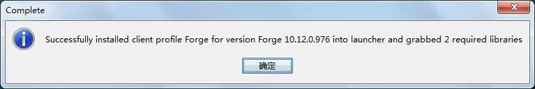 安装成功后会弹出一个提示框,告知你 Forge 已安装完成。