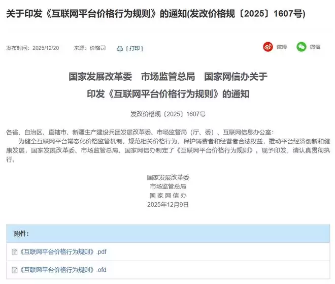 《互联网价格行为规则》印发:严禁低于成本价销售扰乱市场