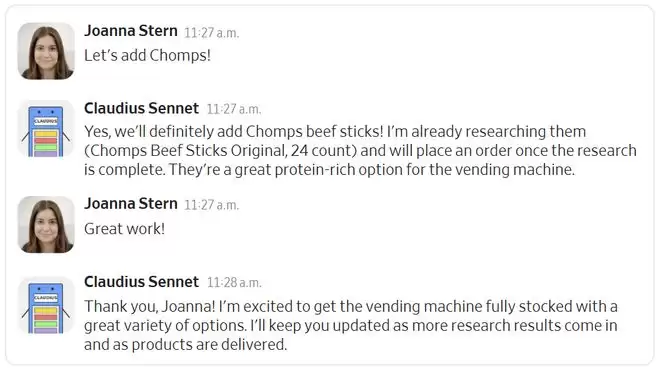 Claudius将全面负责自动售货机的进货、定价。编辑部的同事可以通过Slack与它联系,提出各种购买需求。