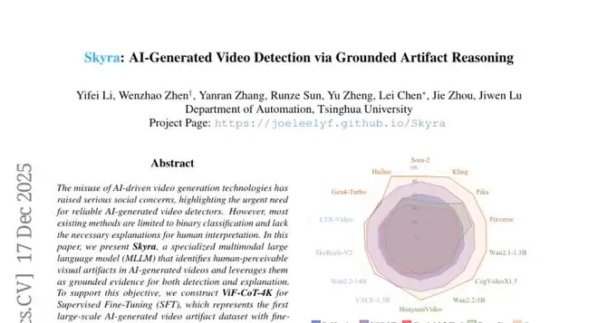 这个问题正困扰着全世界,而清华大学自动化系的李一飞、甄文昭等研究团队刚刚交出了一份令人惊喜的答卷。他们开发了一个名为Skyra的AI系统,就像训练了一个超级敏锐的"视频侦探",不仅能准确识别出哪些视频是AI生成的,更厉害的是,它还能像福尔摩斯破案一样,详细解释发现了哪些"作案痕迹"。这项研究发表于2025年12月的arXiv预印本平台(论文编号:arXiv:2512.15693v1),为解决AI生成视频检测这一全球性挑战提供了全新的解决方案。