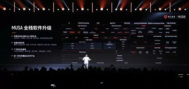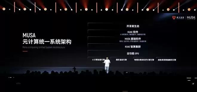 在主题演讲中,张建中强调了MUSA架构作为全功能GPU基石的先进性与技术引领性。