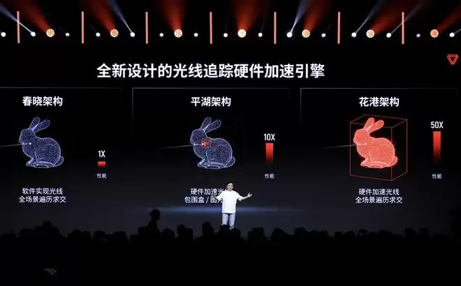 此外,花港做到了图形与AI深度融合:内置AI生成式渲染架构(AGR),增强硬件光线追踪加速引擎,完整支持DirectX 12 Ultimate。