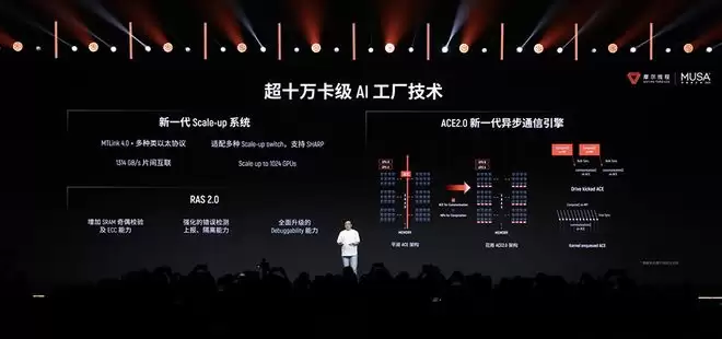 该架构集成新一代异步编程模型,优化任务调度与并行机制,高效发挥算力;通过自研MTLink高速互联技术,支持1314GB/s片间互联,支持超十万卡级智算集群扩展。