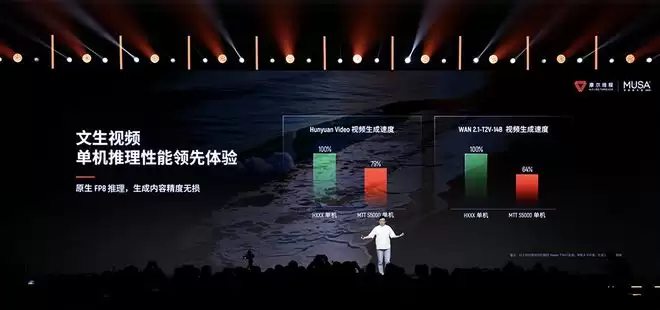 在运行混元、万相视频生成模型时,MTT S5000单机推理速度比HXXX更快。