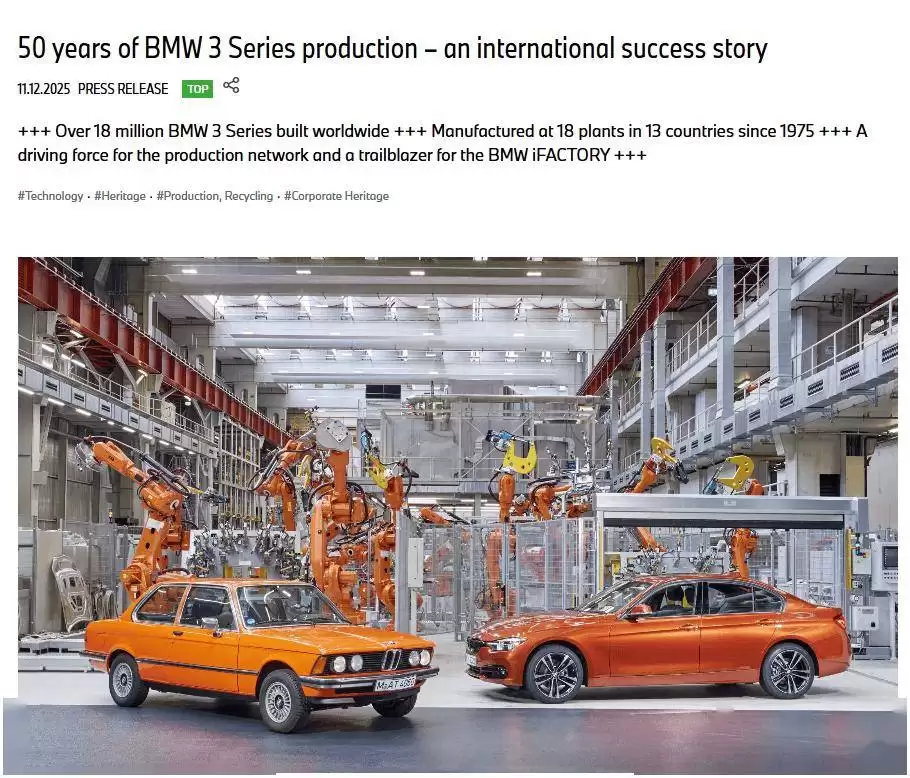 宝马3系销量突破1800万,全球多厂协同再创传奇