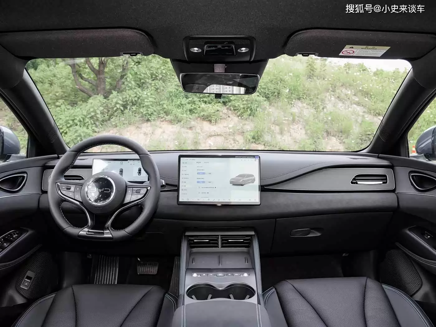 进入车内,环抱式座舱设计搭配大面积软性材质包裹与细腻缝线工艺,营造出温馨实用的驾乘氛围。全系标配的悬浮式中控屏与全液晶仪表盘,搭载了DiLink智能网联系统,操作响应流畅,支持语音交互、在线导航等丰富功能,轻松满足日常使用需求。配置方面,标配的全景天窗搭配了电动遮阳帘,既能享受通透视野,又能有效避免夏季高温暴晒,巧妙地解决了传统全景天窗的痛点。空间表现上,凭借2790mm的长轴距,车内乘坐空间十分充裕。以身高180cm的乘客为例,前排座椅调至合适位置后,头部尚有一拳两指的余量;后排腿部空间同样宽绰,即使是三人并排乘坐也足够舒展,仅中间座椅因较高隆起对舒适性略有影响。