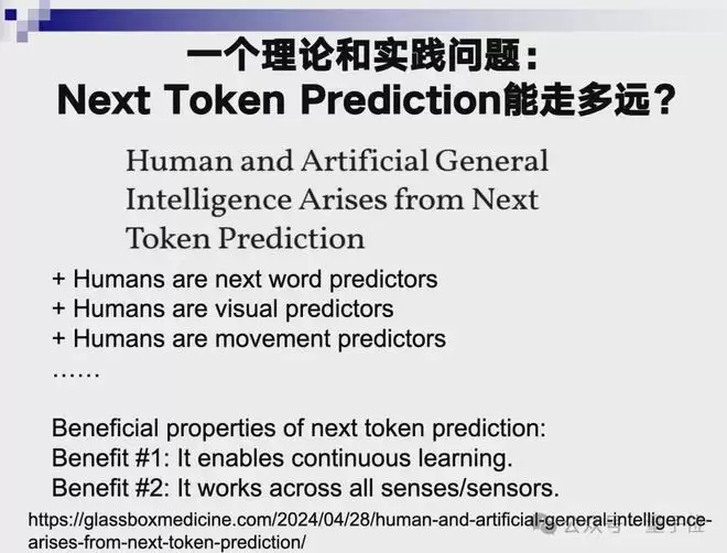 短期内,依然只能期待Next Token Prediction。但如果沿着这条路走,肯定对算力、数据的要求是数量级提升。