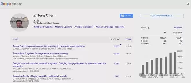 今年,Zhifeng Chen离开待了19年又7个月的谷歌,加入苹果。