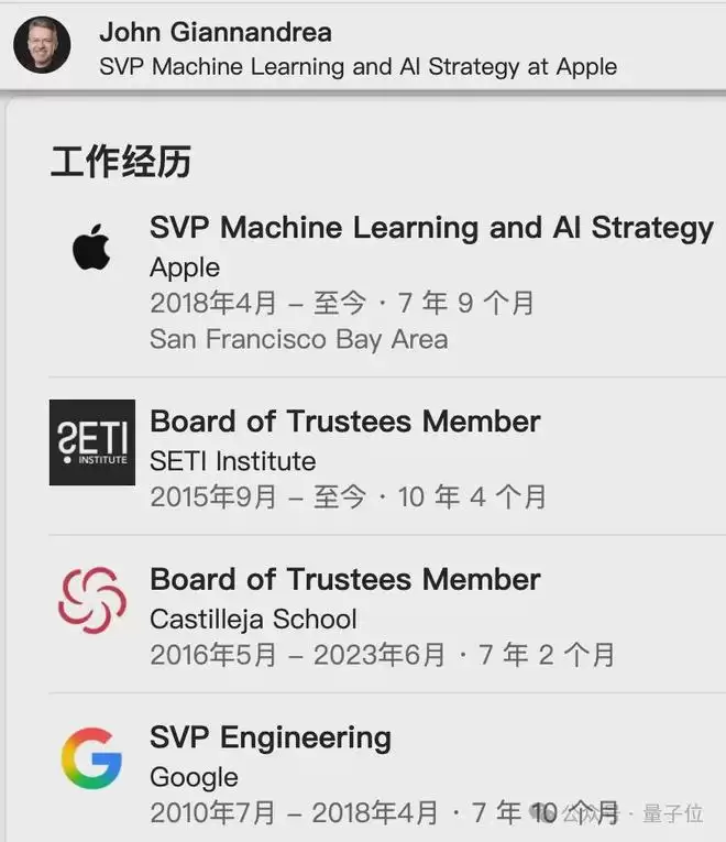 这些人都曾在谷歌AI相老兵,挖来苹果,稍微适应适应就能补充这边的模型训练与工程能力,可以说是“即插即用型”成员。