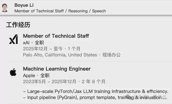 就在这个月,Li离开工作近3年的苹果,加入马斯克旗下的xAI。