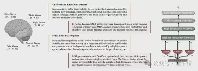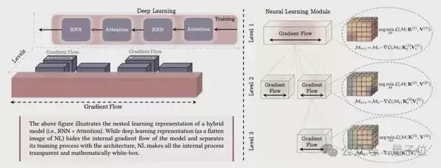 这个发现,成为了撬动整个新范式的支点。它意味着,从最底层的优化器,到中层的注意力机制,再到整个神经网络,都可以被统一地重新审视——它们不再是功能各异被拼凑起来的零件,而是在不同速度、不同抽象层级上,嵌套运行的“学习-记忆”模块。